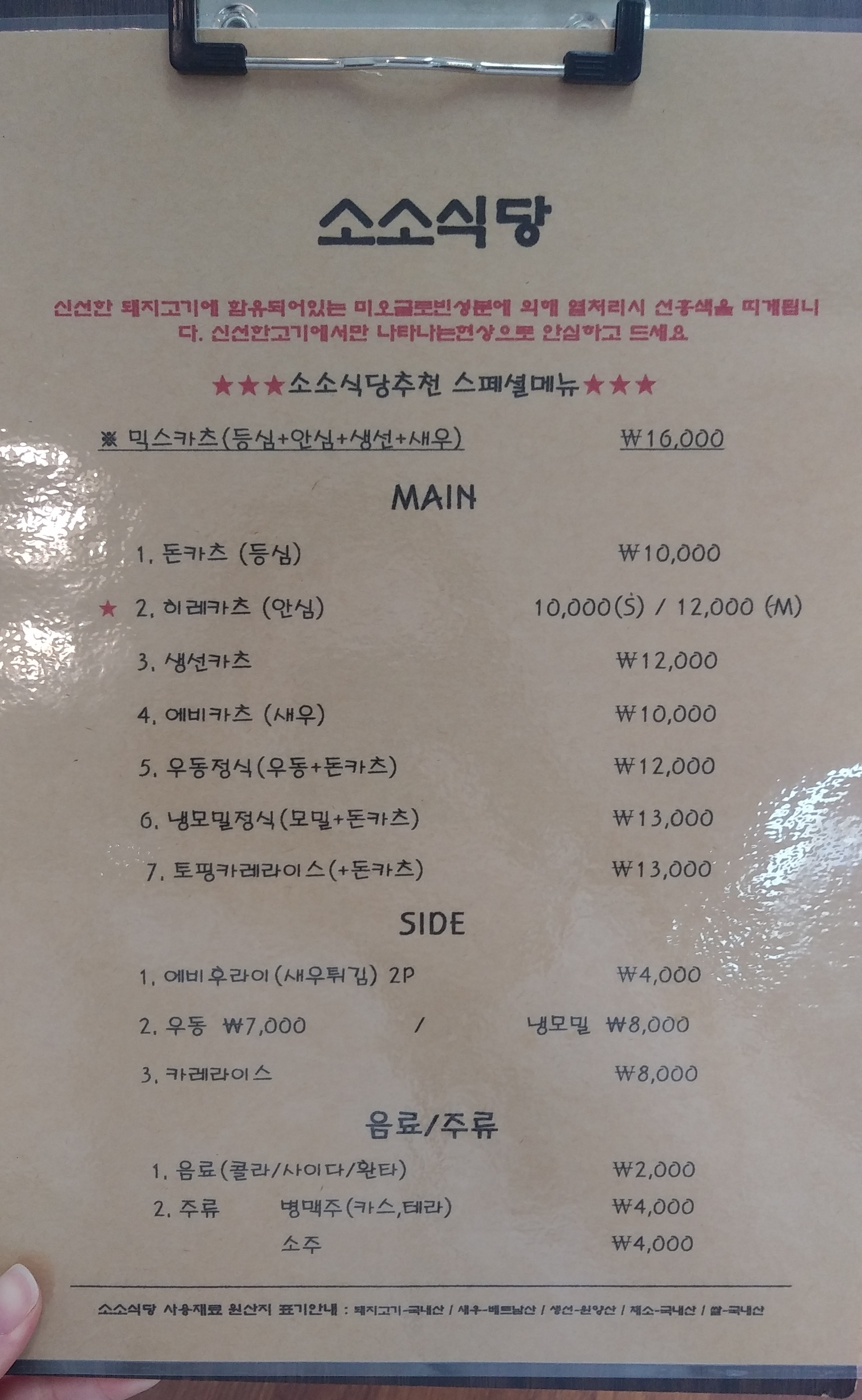 메뉴판입니다!